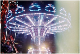 Dazzling long exposure of an illuminated amusement