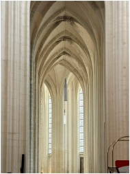 Elegant Gothic arches in a grand church interior located in Leuven, Belgium.