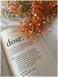 A dried flower used as a delicate bookmark between