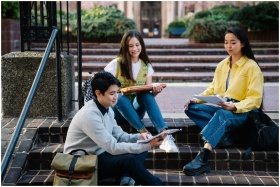 Group of students studying outdoors on college cam