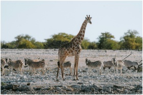 Giraffe and zebras roaming the savannah at Etosha