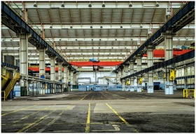 Expansive industrial warehouse interior showcasing