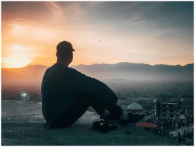 A person sits on a rooftop, silhouetted against a