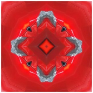 Striking red geometric abstract art with kaleidosc