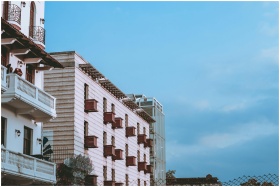 Low-angle view of an elegant building with balconi