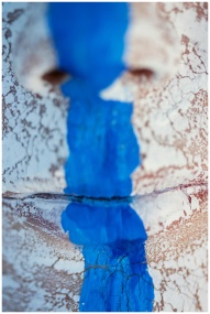 Close-up abstract art featuring blue paint on textured skin, conveying creativity and expression.
