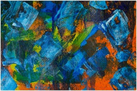 Colorful abstract acrylic painting with bold blue