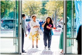 A group of college students with backpacks walking