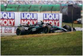 Action-packed Formula 1 racing scene captured at the Interlagos Circuit in São Paulo, Brazil.