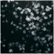A captivating display of jellyfish gracefully swimming in the dark waters, showcasing natural beauty.