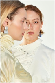 Elegant fashion portrait of two women showcasing m