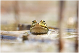 A vibrant frog emerges from a pond in Grand Est, F