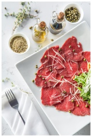 Delicious beef carpaccio with capers, olive oil, a