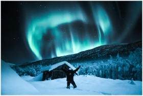 Vibrant northern lights illuminate a winter night