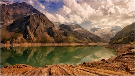 A breathtaking view of mountains reflecting in a tranquil lake, capturing nature's beauty.