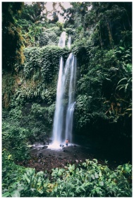 Experience the awe of a towering waterfall in the lush jungle of Indonesia's West Nusa Tenggara.