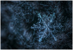 Detailed macro photo of a single snowflake resting