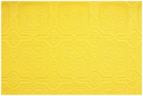 Close-up of a decorative yellow embossed wallpaper