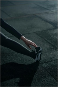 A person in activewear performing a stretching exe
