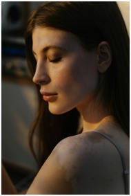 Elegant portrait capturing the natural beauty of a woman embracing her vitiligo.