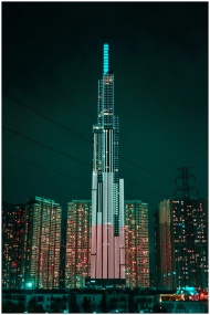Illuminated Landmark 81 skyscraper in Ho Chi Minh