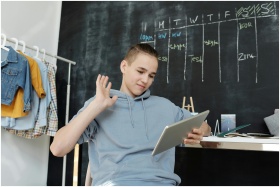 A teenager uses a tablet for online learning in a