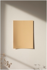 A minimalist mockup of beige paper on a sunlit wal
