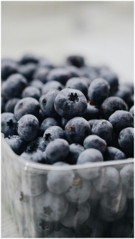 Close-up of fresh organic blueberries in a plastic