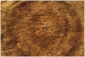 Detailed view of tree rings on a wooden log depict