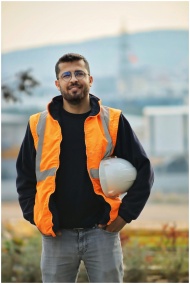 A construction worker stands confidently outdoors