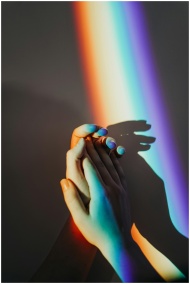 Two hands touched by rainbow colors, symbolizing u