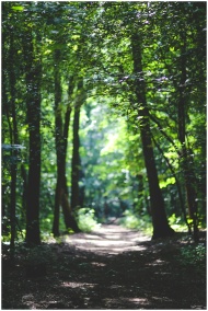 Peaceful forest path surrounded by lush greenery, perfect for a tranquil nature walk.
