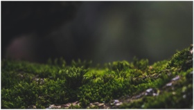 Detailed close-up of vibrant green moss on tree bark in nature, showcasing growth and texture.