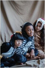 Adorable children in animal costumes sitting together, embodying warmth and playfulness.