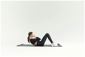 Woman in activewear doing sit-ups on yoga mat in b