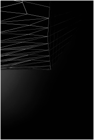 Modern abstract design featuring angled white lines on a dark black background.