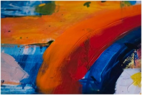 A close-up of vibrant abstract brushstrokes with blue, red, orange, and yellow hues showcasing bold artistic expression.
