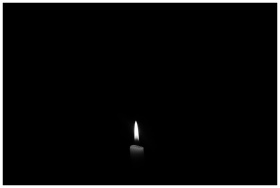 A solitary candle flame against a plain black back