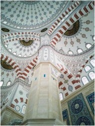 Explore the elaborate Islamic architectural details inside a mosque in Adana, Turkey.