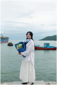 Young Woman Bouquet Sea