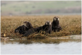 Group of Southern Sea Otters resting in the marshy