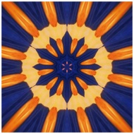 Artistic abstract kaleidoscope design featuring vibrant orange and blue colors.