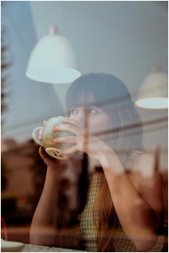 Woman enjoys a moment of reflection while sipping