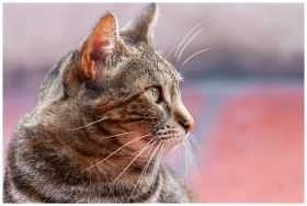 Close-up profile of a tabby cat in Lima, Perú. App