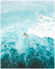 Stunning aerial shot of a surfer riding vibrant bl