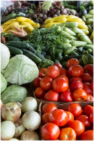Vibrant display of organic vegetables including to