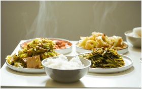 Capture of steaming Asian dishes featuring a varie