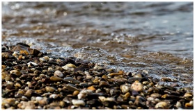 Close-up of pebbles with gentle ocean waves. Perfe