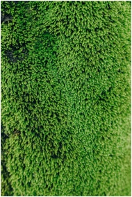 Detailed close-up of vibrant green moss texture fo