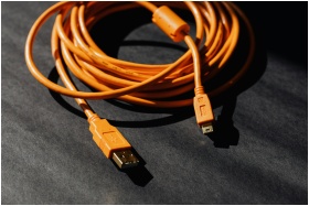 From above of orange usb to micro usb cable twiste